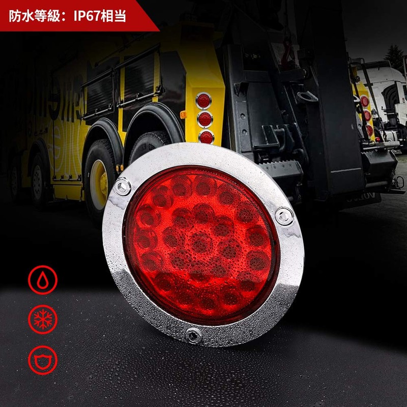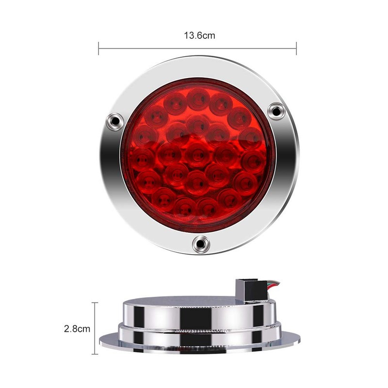 Aoling Tail Lamp 12V 24 LED Round Round Rear Light Electroplated Housing Trailer Tail Light Truck Tail Lamp Brake Light Red Light Pack of 2