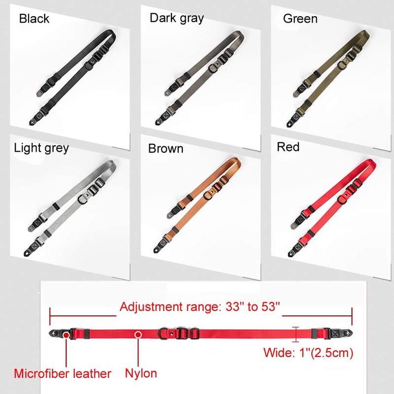 - Unique Design : The camera strap adopts an adjustable design, Quickly shorten and lengthen using dual high density POM plastic buckle, which is convenient for us to adjust the length of the strap during shooting. Adjustment range: 33 to 53 inches. Can be adjusted as needed