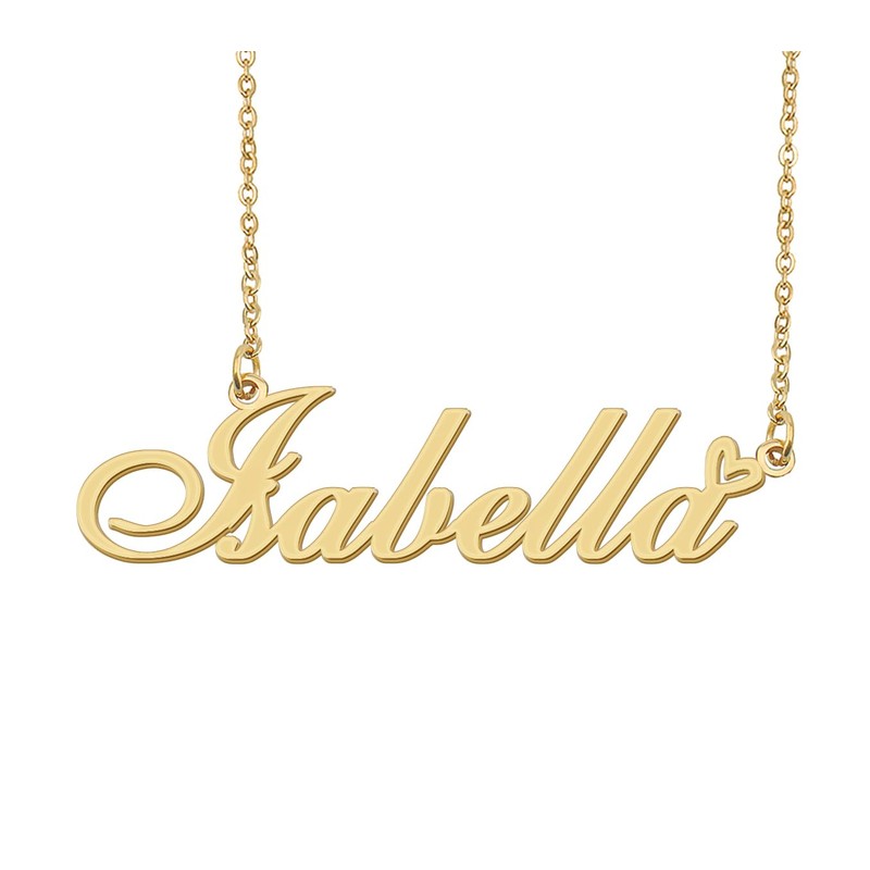 Aoloshow Isabella Name Necklace Heart Charm Pendant 18k Gold Plated Stainless Steel Jewelry for Womens Graduation