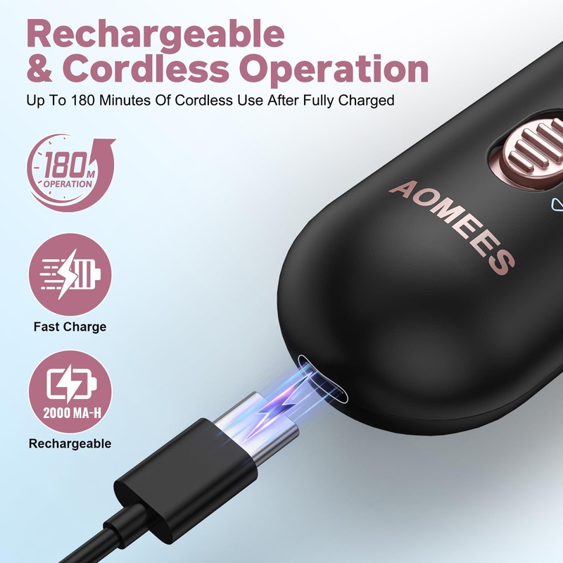 AOMEES focus on products that make it possible for enjoying professional manicure and pedicure at home! The cordless nail care system includes everything you need to effectively smooth corns and calluses, remove excess cuticles, and file, shape, and buff your nails for an amazing salon-like experience at home. With great portability, this compact electric nail drill machine is also a must have for you on vacation.