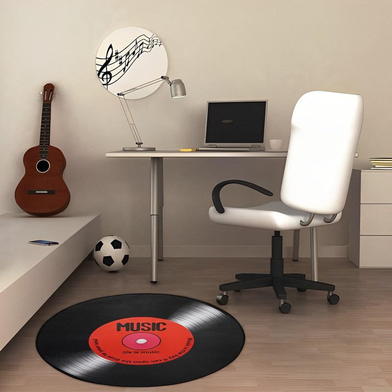 - Alfombra de disco de vinilo: la alfombra de área crea un efecto visual 3D. El uso inteligente de rayas y sombras hace que la alfombra de habitación con patrón clásico de disco de vinilo se vea más vívida. La alfombra se mezcla con tu decoración existente y hace que tu casa o sala de música sea más elegante