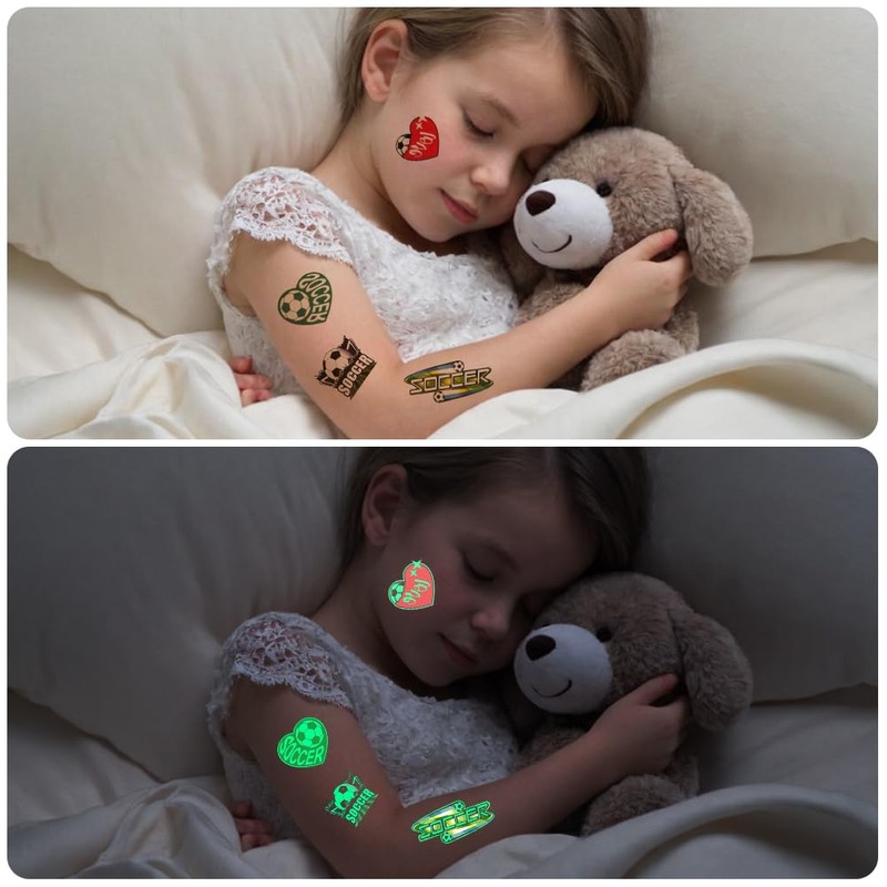 Aomig Children's Tattoos Set, 20 Sheets Temporary Tattoos, Glow in the Dark Tattoo for Girls Boys, Football Children's Temporary Tattoos Stickers for Children's Stickers for World Cup and Birthday