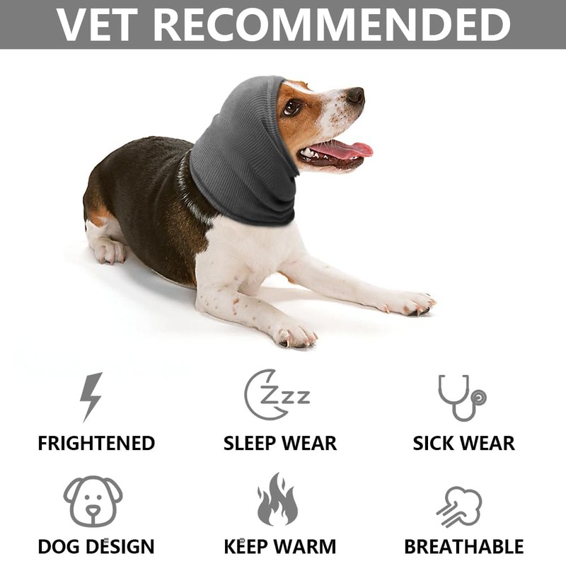 Aomig Dog Snood Ear Protectors, No Flap Ear Wraps for Dogs, Pet Dog Earmuff for Winter, Dog Hat Dog Ear Muffs Noise Protection Anti-anxiety Calming, Dog Neck and Ears Warmer Headwear(Grey,M)