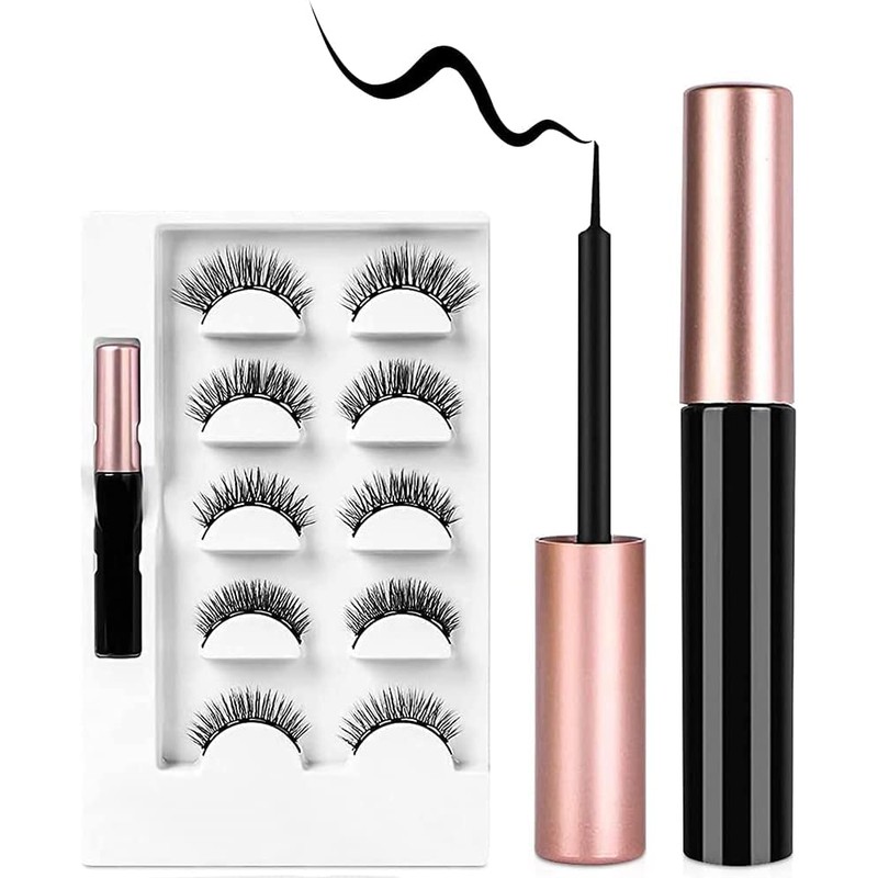 AOMIG Magnetic Eyelashes with Eyeliner Kit, 5 Pairs Natural Look False Eyelas...