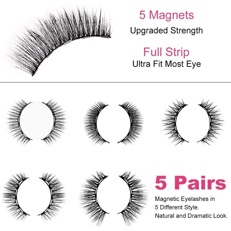 • 【ADJUSTABLE SIZE】Every magnetic eyelash comes with 5 strong magnets each will quickly attach itself to where you put the eyeliner; You can be cut to a suitable length and curve depending on you