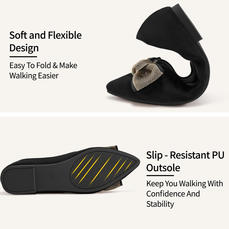 - Fashion Upper: The upper of the wedding flats is made of high quality suede fabric, which is soft and skin-friendly, providing you with a better wearing experience. Pointed toe and bow design make the womens flats comfortable dressy look fashionable and elegant, a must-have in your closet.