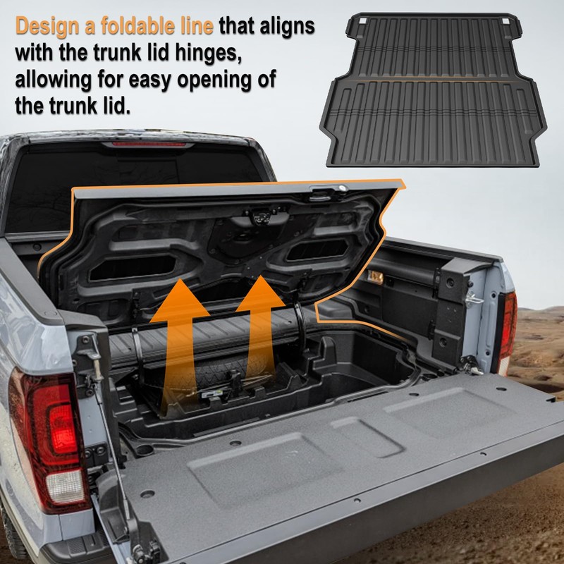 AOMSAZTO Bed Mat Compatible with Honda Ridgeline 2017-2024 2025 5.3FT Truck Bed Liner Heavy Duty TPE All Weather Custom Fit Ridgeline Accessories Heavy Duty Pickup Car Cargo Mat + Tailgate Mat