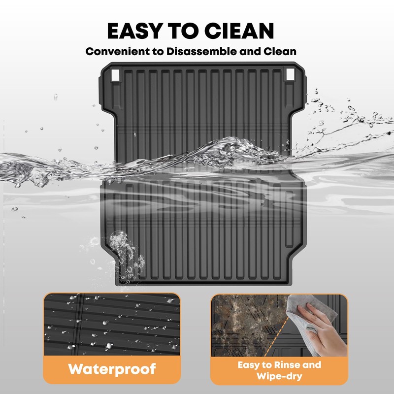 - 【ALL WEATHER PROTECTION】 - The AOMSAZTO truck bed mat are non-slip and waterproof, this truck bed mat uses elastic TPE (Thermoplastic Elastomer), shield your floor from dirt, mud, salt, rain, snow, and even hot summer temperatures. No foul odor is produced even at high temperatures. soft touch and exquisite finish.