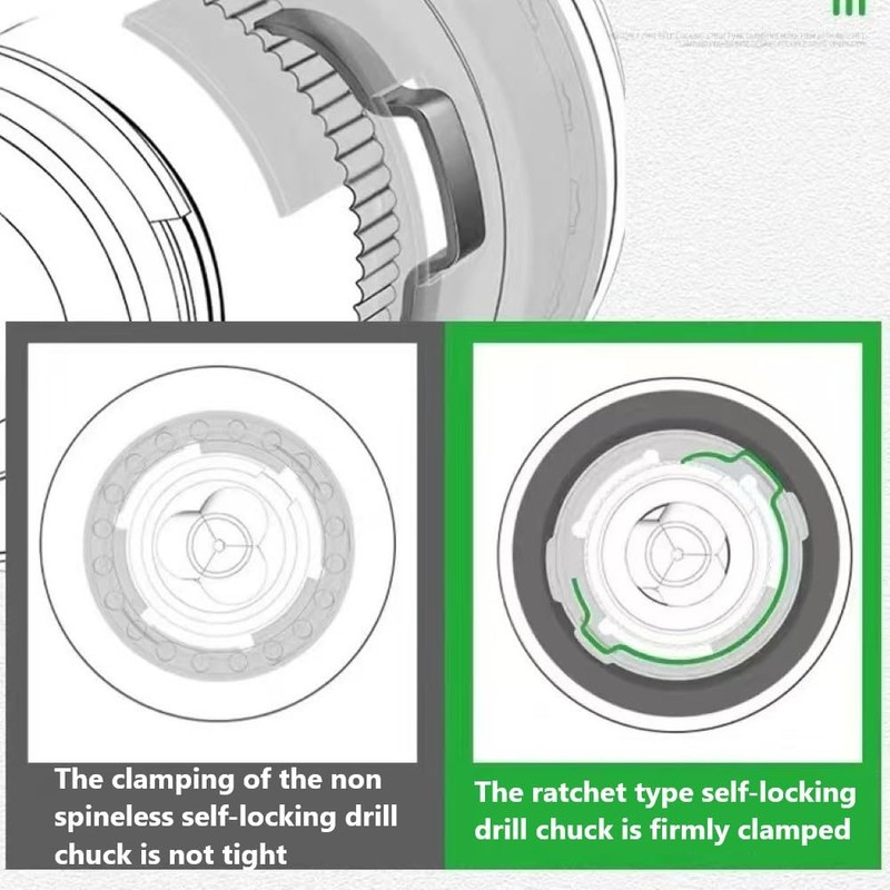 - Quickly loosen or tighten the chuck by hand, easy to change the drill bit, no need to fumble with the chuck key. Save your time and energy