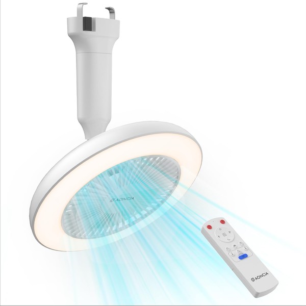 AONCIA Ceiling Fan Light, LED Mini Light, Hanging Ceiling Light, Motion Sensor, UV Included, Negative Ion Function, Circulator, Air Circulation, Advanced 2.4 G Remote Control, Stepless Color/Dimmable,