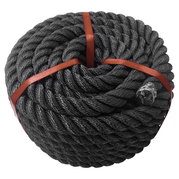 Aoneky 3/8 1/2 5/8 3/4 1 inch Black Twisted Rope (3/4 inch x 50 ft)