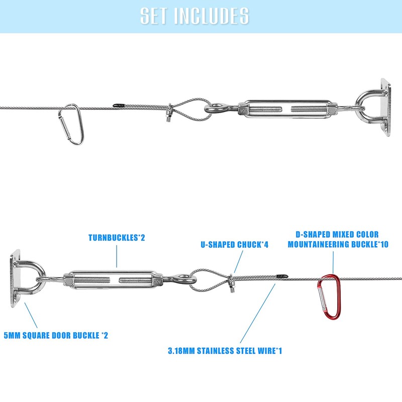 Crafted from high-quality, weather-resistant stainless steel wire, this accessory is built to last in various outdoor environments. The different length options give you the flexibility to tailor the setup to your needs, whether you need a shorter length for small spaces or a longer wire for larger nets or outdoor displays.