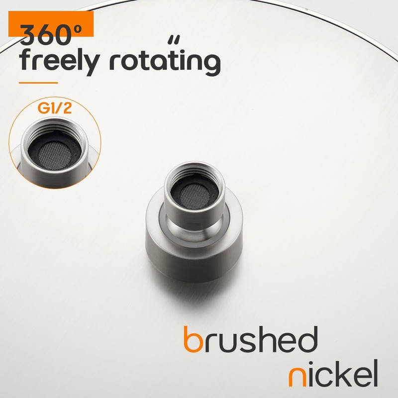 - ● NO HASSLE INSTALLATION ● The rained showerhead designed with adjustable swivel ball joint, which can fit onto any standard shower arm. Connector Size: G1/2" Universal Fitting. Please feel free to contact us anytime if you meet any problems with our shower head, your satisfaction is our priority