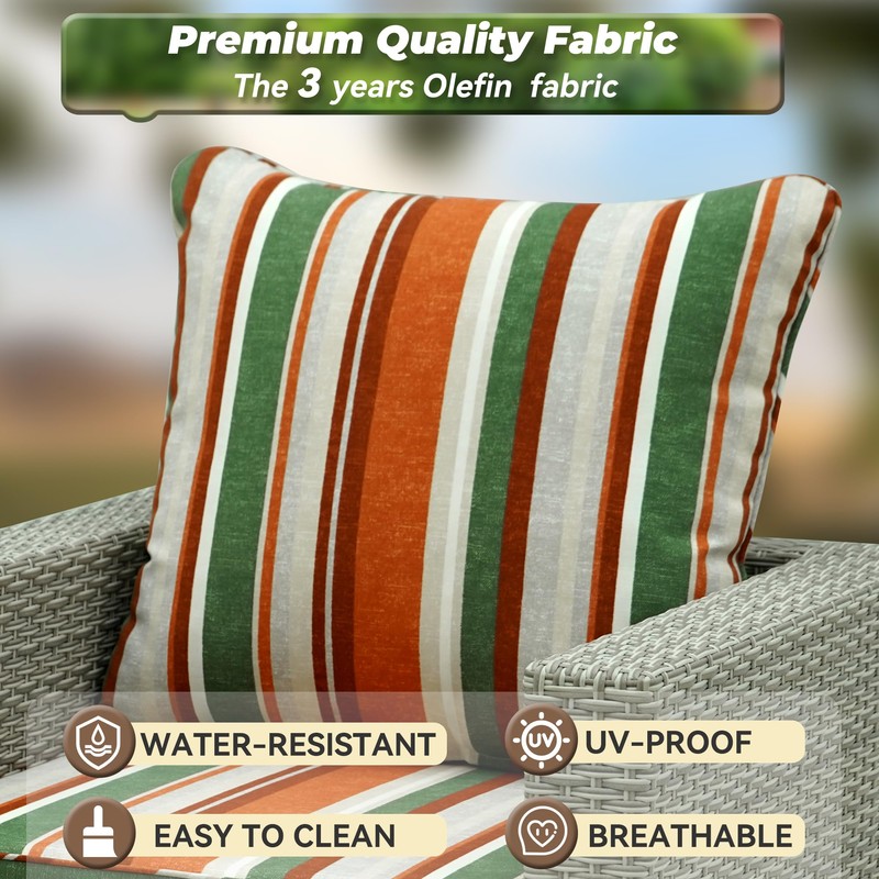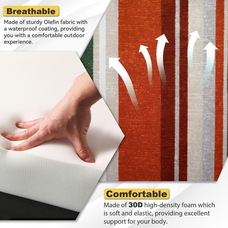 • OLEFIN FABRIC - AONETOZ Outdoor cushion covers adopt water-resistant, non-fading olefin fabric. This high-quality durable fabric is more durable than other fabrics, with good waterproof performance and light fastness for up to 1500 hours. High-density Olefin Fabric with a bumpy texture brings a refreshing & breathable summer