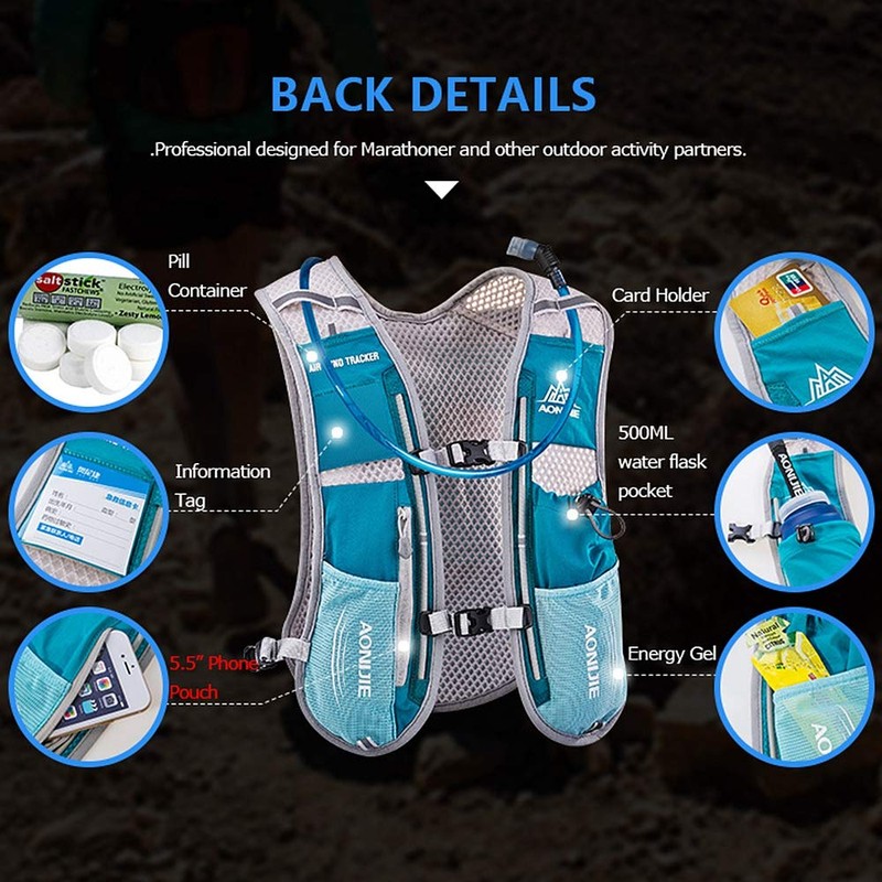 • 🏃‍♂️Hydration System:Aonijie running vest compatible with 1.5L bladder (not included). Bite and Pull valve,quick release leak proof bladder connector.Water can be take it out easily when running. Convenient trail running backpack outfit.
