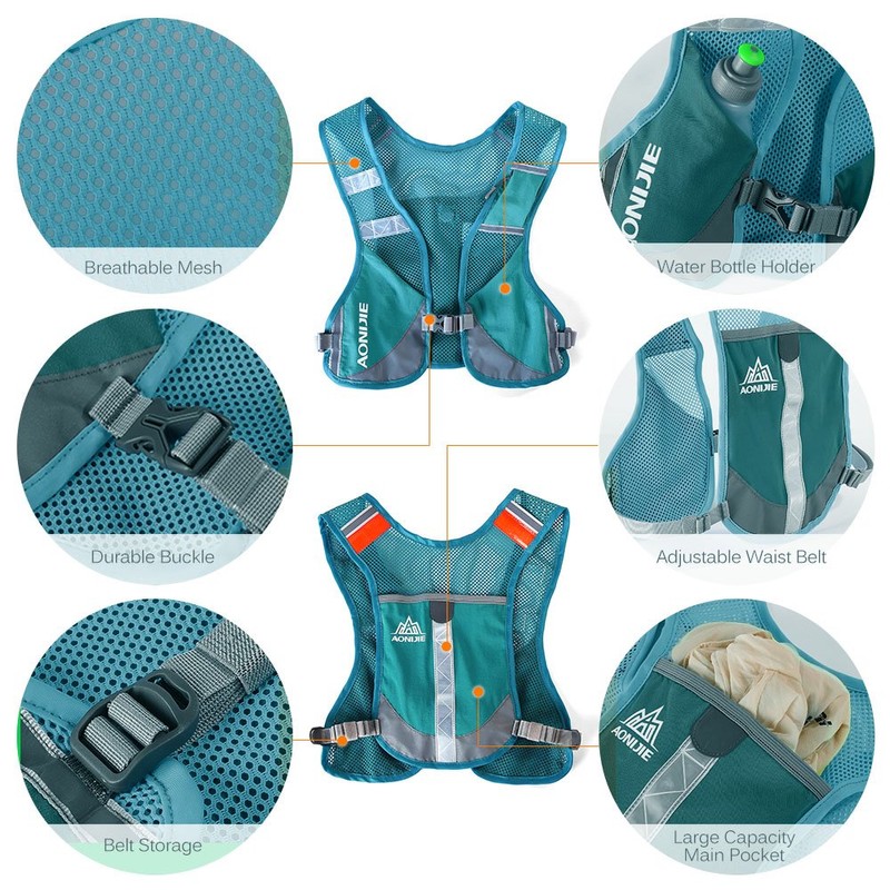 AONIJIE Ultralight Hydration Backpack Running Marathon Backpack Drinks Bag with 2 Water Bottles (Grey)