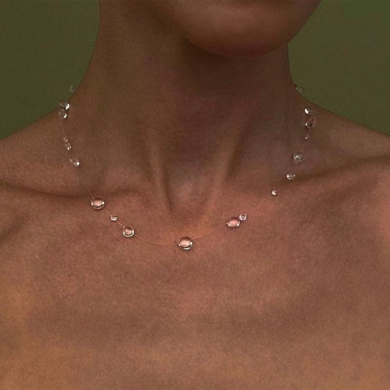 - Elegant Dewdrop Aesthetic – Inspired by nature’s beauty, this necklace features delicate clear beads that glisten like morning dew.