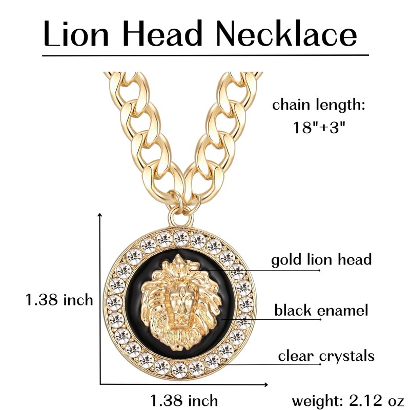 - Design: This necklace features chunky cuban chain and the round 3D lion head pendant adorned with dazzling crystals
