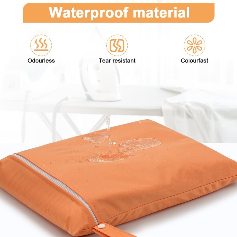 AOOSA 2 PCS Wet Bags, Reusable Cloth Nappy Wet Bags with Handle and Zipper,Lightweight Waterproof Travel Laundry Bag, Washable Wet Dry Bag for Travel Beach Swimming Gym Yoga Camping(Green&Orange)