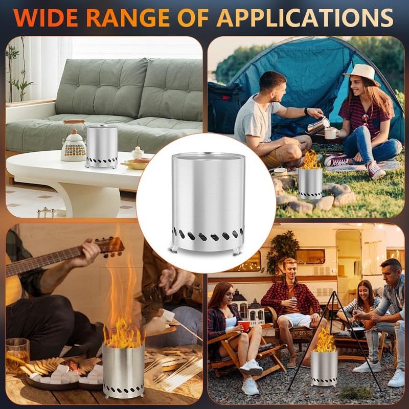 - 【Indoor and Outdoor】 Say goodbye to annoying smoke! This tabletop fire pit uses advanced 360° airflow and double-wall design to significantly reduce smoke and provide pure flames. It is very suitable for outdoor spaces such as patios, backyards, balconies, and even carefully used in well-ventilated indoor environments to create a warm and comfortable smoke-free atmosphere.