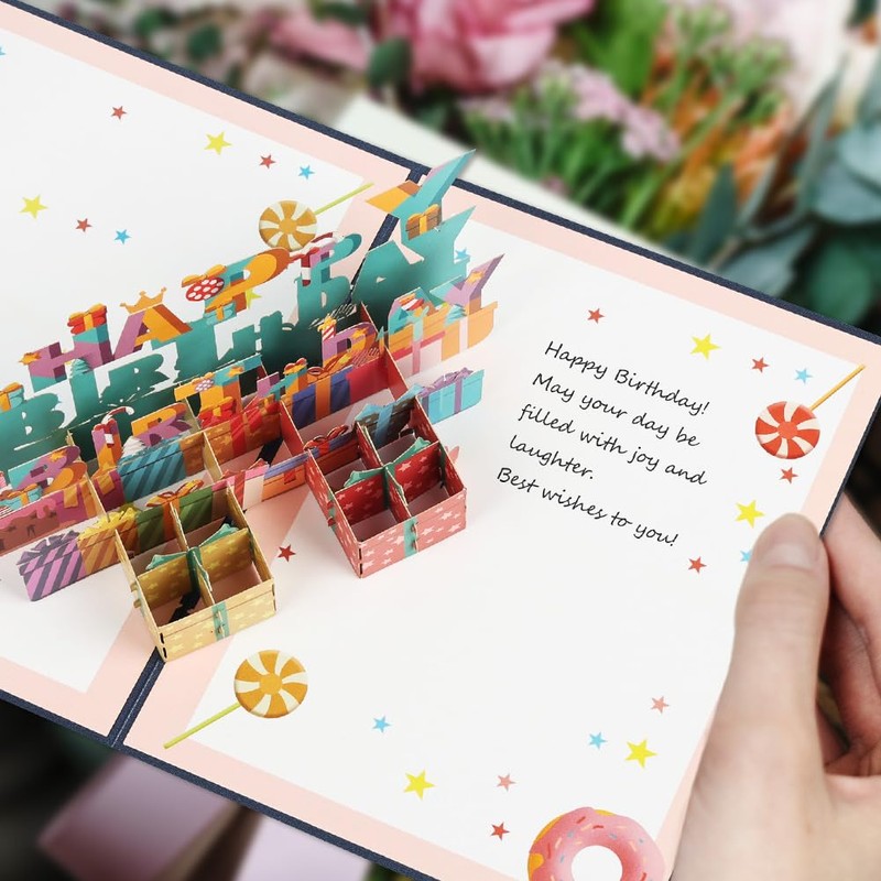5. Our 3D birthday pop-up cards are brightly colored and beautifully shaped, making them the perfect finishing touch to any occasion.