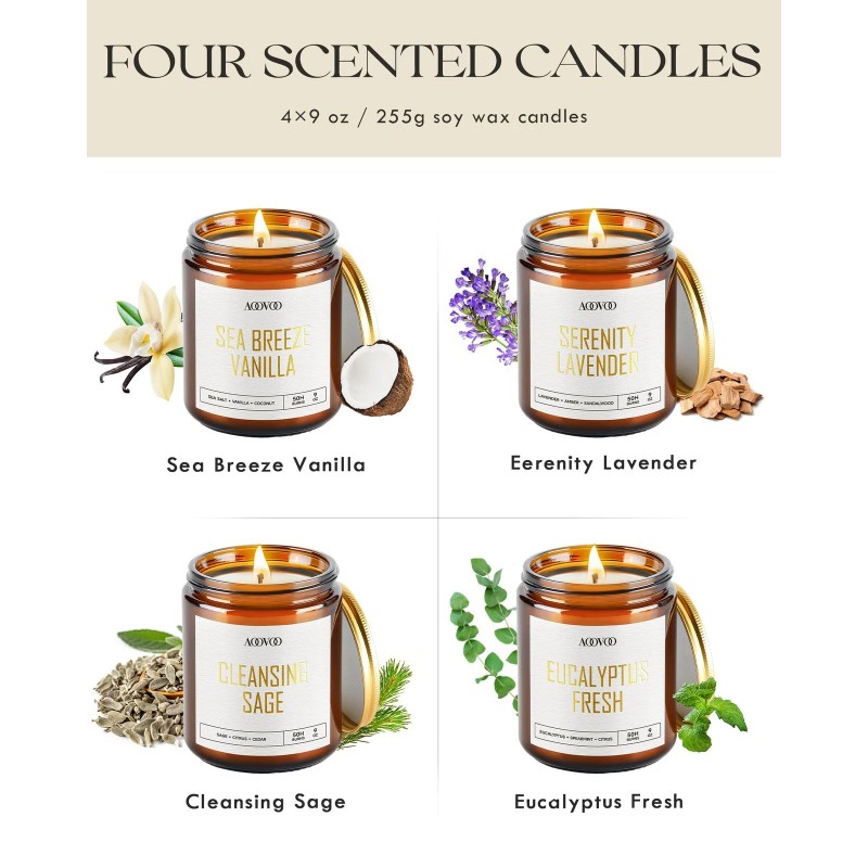 Aoovoo New Best Scented Candles 4PC Candle Set, 36 oz Soy Candles, for Home Scented
