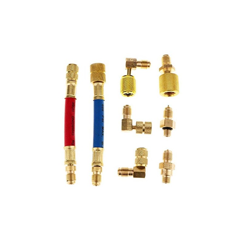 Aoowei Auto AC Air Conditioning Refrigeration R134A R12 Connector Adapter Hose Kit 8Pcs