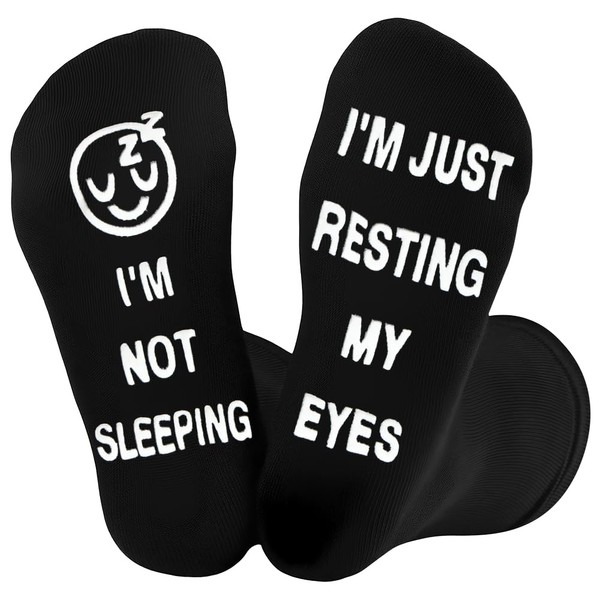 - 【Non-Slip Text】: Exquisite embroidery pattern, interesting design adds highlights to the outfit, showing humor and personality; non-slip letters are printed on the bottom: "I'm not sleeping, I'm just resting my eyes." It can play a non-slip role even when you don't wear shoes indoors.