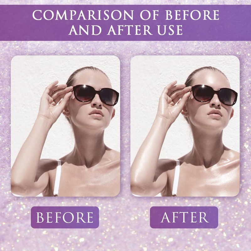 --Das Puder ist leicht, leicht und durchscheinend, mit einem Schimmereffekt, der mit bloßem Auge sichtbar ist. Enthält Highlighter-Puder für einen dezenten Schimmer auf Gesicht, Armen und Beinen.