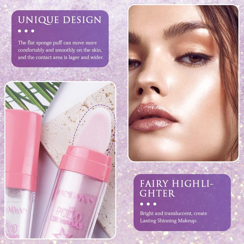 - 【Einzigartiges Design des Puderquasten-Highlighters】Die perfekte Kombination aus Puderquaste und Highlighter, tippen Sie einfach auf den Schwammkopf, der glänzende Highlighter haftet auf Ihrer Haut, sehr einfach zu verwenden. Im Vergleich zu Sprüh-Highlights kann der Schwammkopf gleichmäßiger aufgetragen werden, ohne dass Puder herunterfällt.
