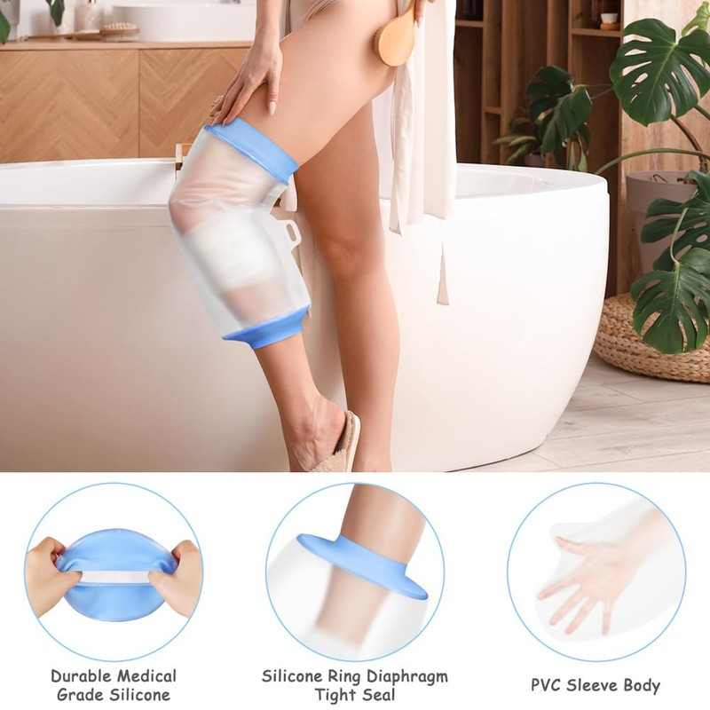 - 【Easy to Use】The waterproof knee cast for shower is easy to put on and take off, and the high elastic opening seal makes the waterproof adult ankle cast easy to pull on and take off, and it is painless and will not hurt the injured area.