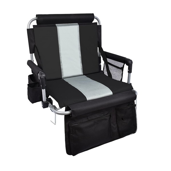 - 【Functional Storage Zone】This stadium seat features cup holders and mesh bags on both sides of the armrest, a zippered storage bag under the seat, and two storage pockets in the backrest. You can enjoy your favorite drink while watching an intense football or basketball match and have a convenient place to store personal items.