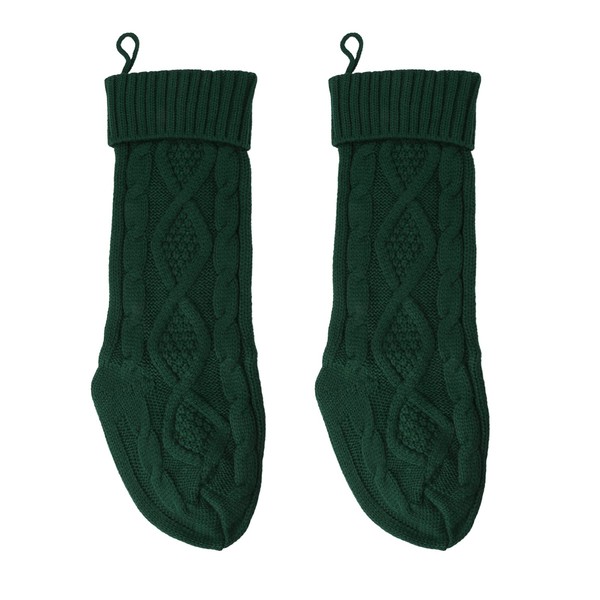 aoozleny Cable Knit Christmas Hanging Stockings Solid Color,2 PCS (Green)