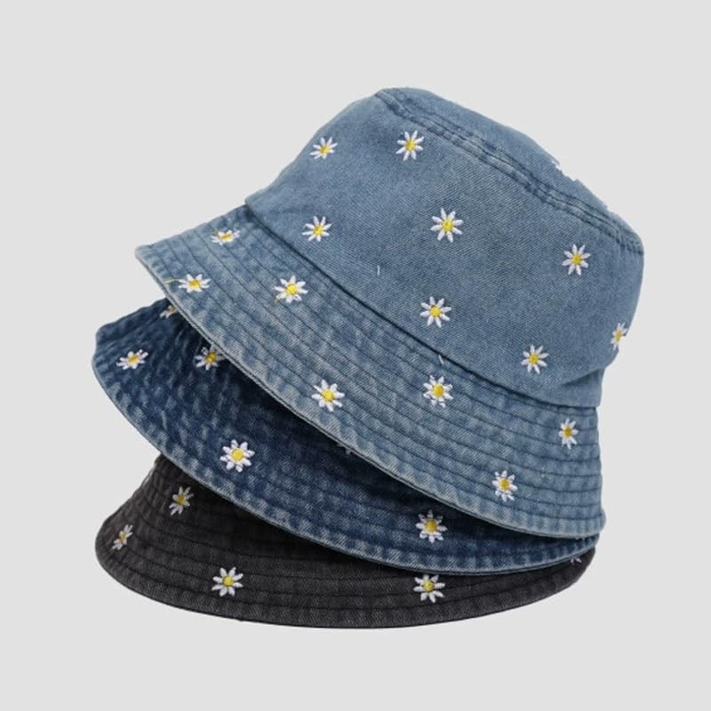 aoozleny Daisy Embroidered Denim Bucket Hat, Cute Bucket Hats Unisex Sun Summ...