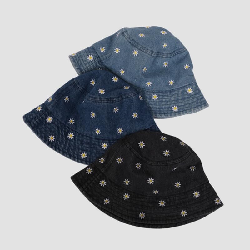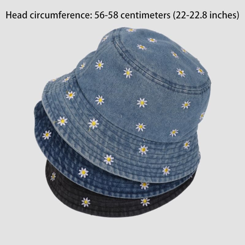 aoozleny Daisy Embroidered Denim Bucket Hat, Cute Bucket Hats Unisex Sun Summer Travel Beach Fisherman for Men Women Teens (CA/US, Alpha, One Size, Standard, Black)