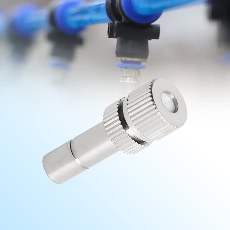 - Misting Nozzles Specification: Spray orifice diameter: 0.2mm / 0.008", Quick connector diameter: 6mm / 0.24", Outer Diameter: 9.5mm / 0.35”, Length: 27mm / 1.06”.