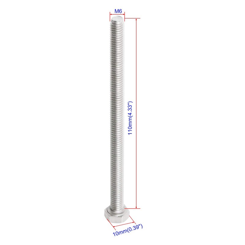 - ✅Thread specifications: M6, Length: 4-2/5" (excluding head), Hex Head Width: 10mm, Pitch: 1mm, Length*Width*Height: 114mm x 10mm x 10mm / 4.49" x 0.39" x 0.39" .