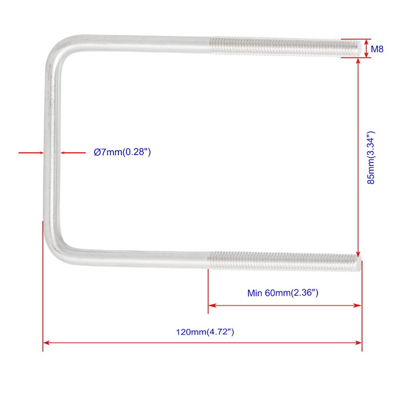 - 🌺 1). Main specifications: Style: rectangular; M8 thread; Dimensions: 85 x 120 mm/3.35" x 4.72"; U groove width: 85 mm/2.95"; suitable for rectangular tube size: 85 x 85 mm/3.35"x 3.35"; Color: Silver; Material: SUS304 stainless steel;