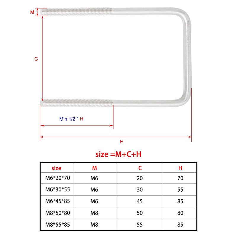 - 🌺 2). Features: U-shaped bolts are made of high-quality 304 stainless steel forged and pressed into one body, with high strength and strong corrosion resistance, and they perform well even in outdoor humid or high-salt coastal areas;