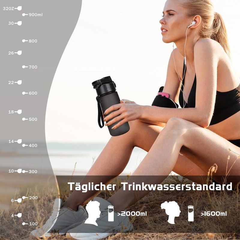 - Safety and health: 1 litre drinking bottle is made of food-safe Tritan material, which is 100% BPA-free and non-toxic. It has 100% pure taste and offers you an odourless and tasteless drinking experience. Lightweight, durable and shock-absorbing, makes it your ideal companion in different life situations and supports your positive and healthy lifestyle