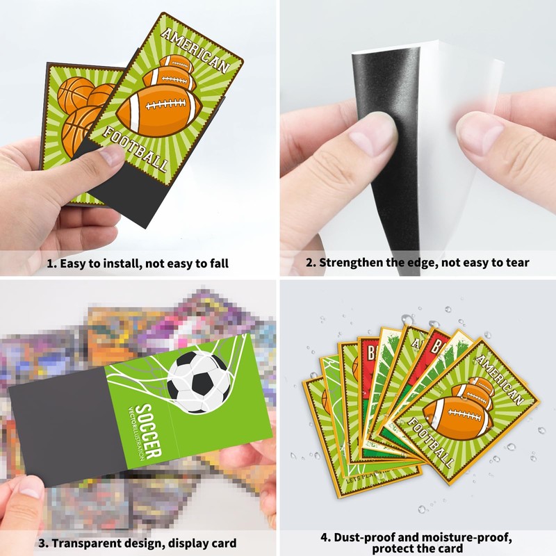 - Compatible with multiple cards: Our trading card case measures 66 x 91 mm. The thick standard size card sleeves are perfect for holding most cards such as football cards, basketball cards, playing cards, trading cards and sports cards. An ideal gift for children and adults.