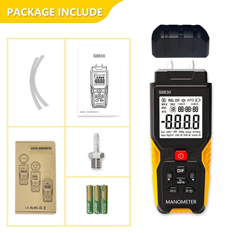 - 【Time-Stamped Data Logging】Store up to 19 time-stamped readings with this precision digital manometer. Ideal for lab testing or field diagnostics, the data retention feature lets you track pressure trends, analyze min/max values, and export records effortlessly. Combined with a ±0.3% FS accuracy and rapid 0.1s response time, it’s a must-have tool for gas engineers and maintenance professionals