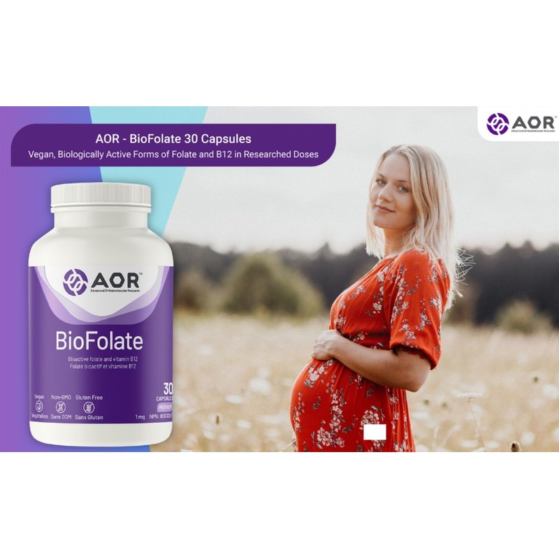 AOR AOR BioFolate 1mg Methylfolate 5-MTHF Plus B12 Supplement, 30 Caps 30-Day Supply - Vegan, Non-GMO & Gluten-Free, Active Vitamin B9 Folate, Methyl B12 for Cardiovascular Support & Nutritional Wellness