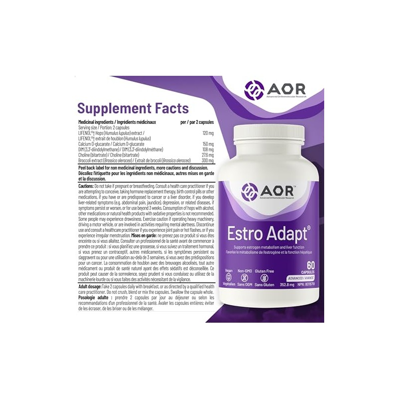 AOR AOR Estro Adapt 60 Capsules 30-Day Supply - Hormonal Balance Supplement with DIM, Calcium D Glucarate & Choline, Support Liver Function, Vegan, Non-GMO and Gluten-Free - Estrogen Balance for Women