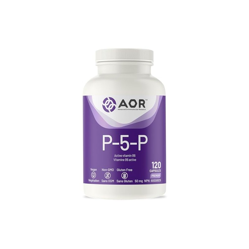 AOR AOR P5P Vitamin B6 Supplement 50mg, 120 Caps 60-Day Supply - Active Form Pyridoxal-5-Phosphate - Gluten-Free, Non-GMO & Vegan - High Absorption Formula - Supports Energy & Promotes Nutrient Metabolism