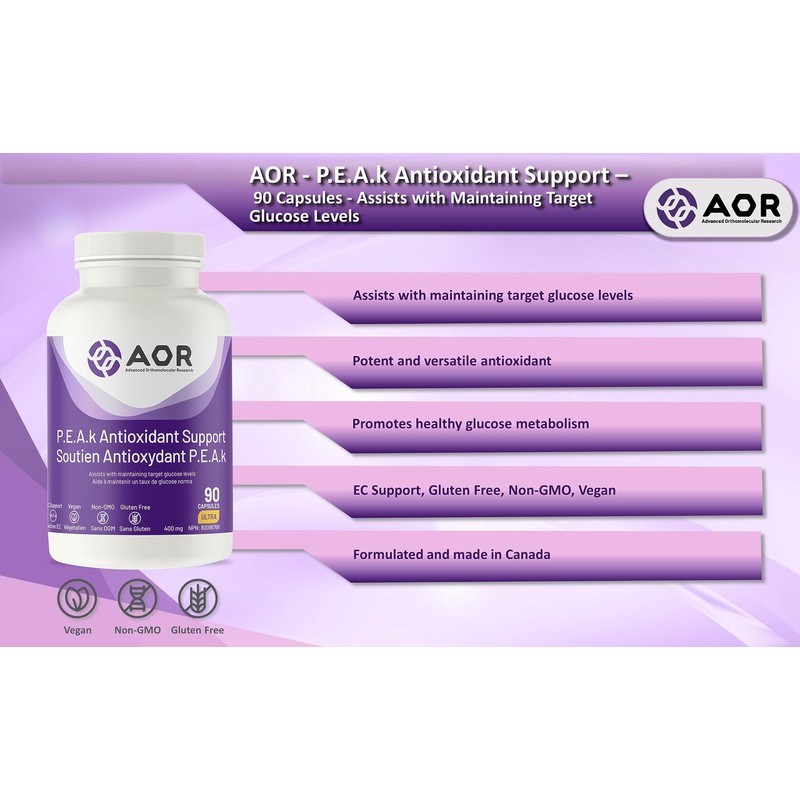 AOR - P.E.A.k Antioxidant Support - 90 Capsules - Assists with Maintaining Target Glucose Levels