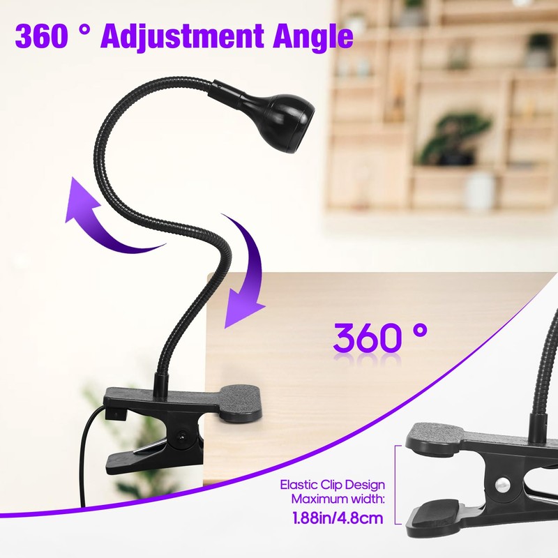 • 【Flexible Curing Lamp】The gooseneck of LED small desk lamp ,nail light can be bent 360 degrees freely. And led nail cure light with securing clip, make sure the operating process is smooth and stable.