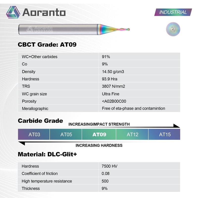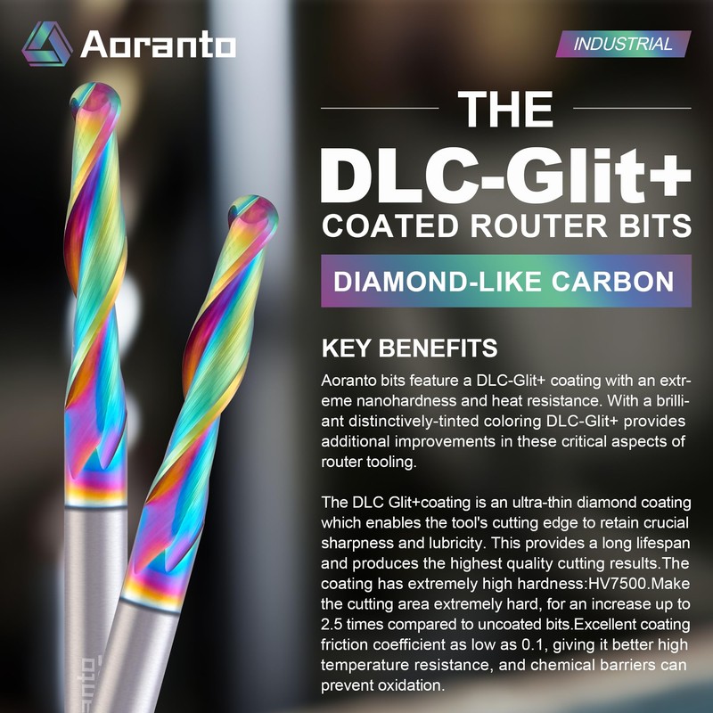 - Premium Coating: The DLC-Glit+ coating with an extreme 7500HV nanohardness and 500℃ heat resistance, which maintains the sharpness and lubricity of the tool's cutting edge
