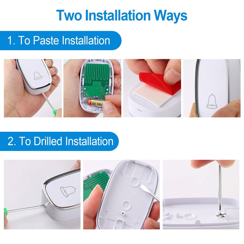 - Long range and strong signal: up to 300 m / 1000 feet range in open terrain. It is long enough for most homes. The signal can penetrate obstacles very well. This wireless bell can be used in homes, villas, offices, business premises or garden.
