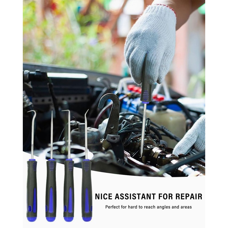 - You will receive 4 different hooks to remove the seal: 90° hook, 45° hook, curved hook and straight pin. There are 4 scrapers in total